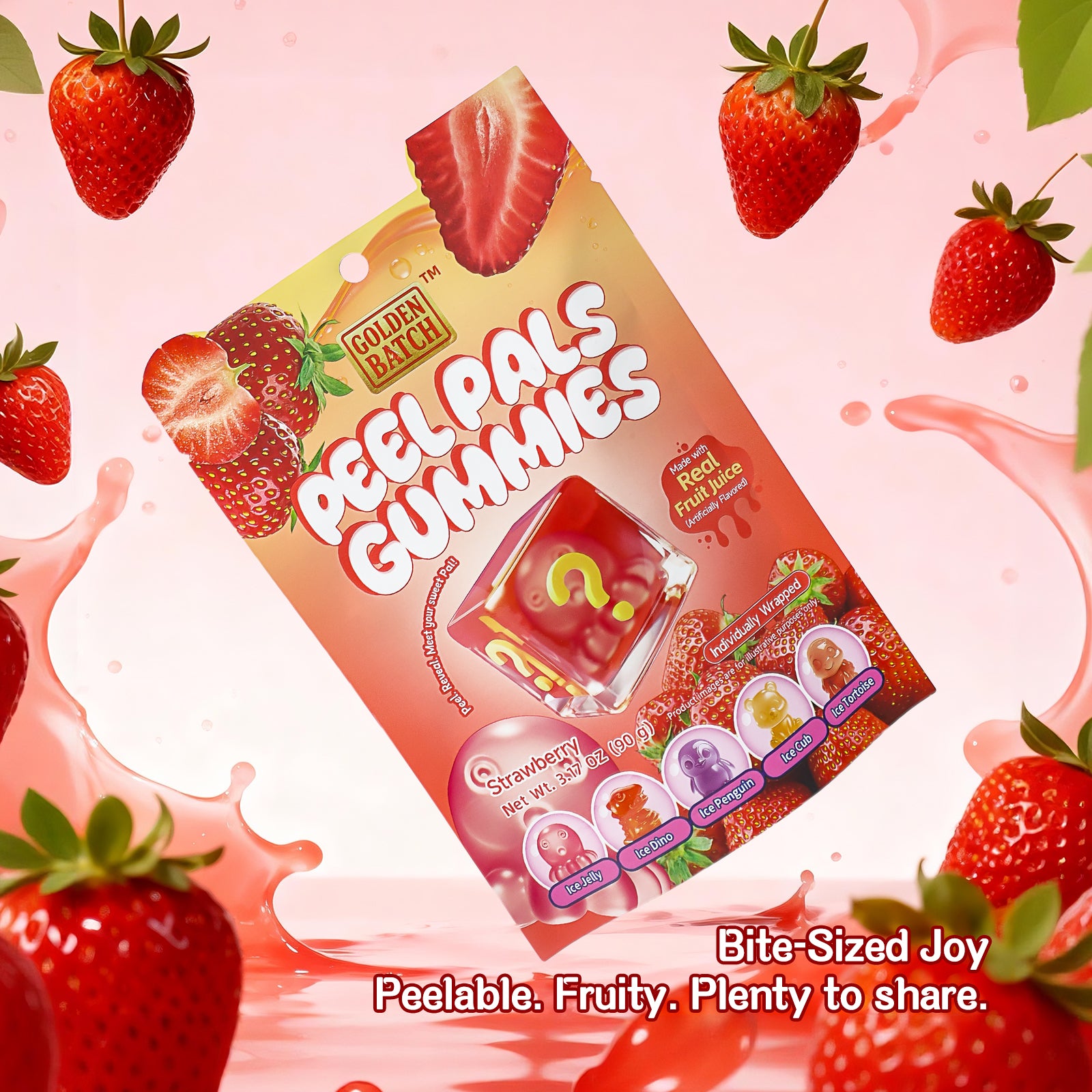 Sweet, bright, and joyfully chewy, Peel Pals Gummies – Strawberry deliver a delightful double-layer experience in every bite. The soft outer strawberry gummy wraps around a hidden gummy surprise inside, creating an extra pop of fruity flavor. Individually wrapped for freshness, they’re perfect for lunchboxes, candy bowls, gifting, and anytime snacking.